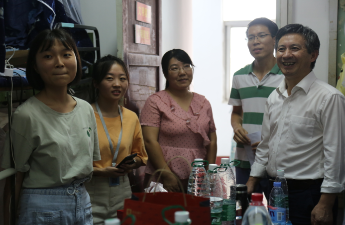 本网讯:9月10日,在中秋佳节来临之际,KY开元集团官网入口院长胡付高,党总支书记林先安,院学工办老师及全体新生班主任一行来到新生寝室,看望并慰问新生。