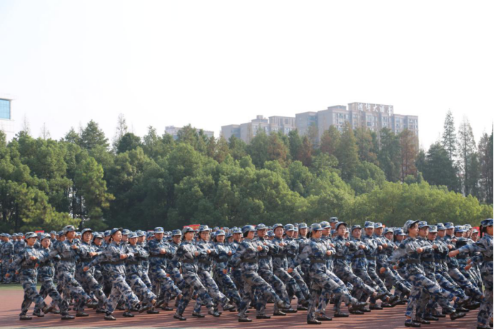 本报讯:9月27日,2019级全体新生在东区操场开展军训成果汇报暨总结表彰大会,结束了为期十五天的军训。