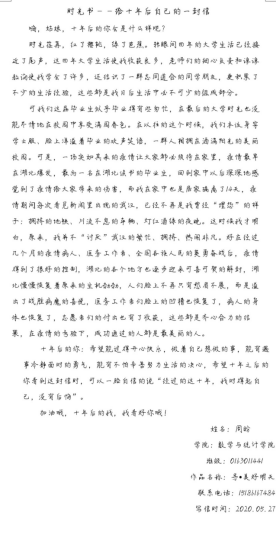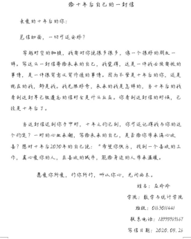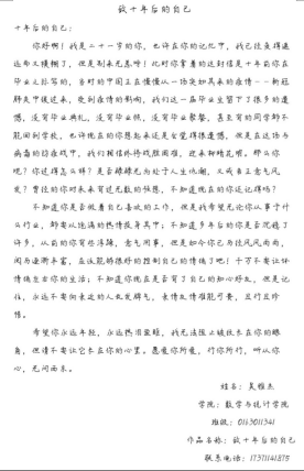 (本网讯:毛婉平 崔蜜琴) 别忘了湖工的晚风,也别忘了陪你吹风的人。六月,很多毕业生以《时光书-----给十年后自己的一封信》这一形式表达了他们对大学四年生活的美好回忆和对未来远方的满怀期待!