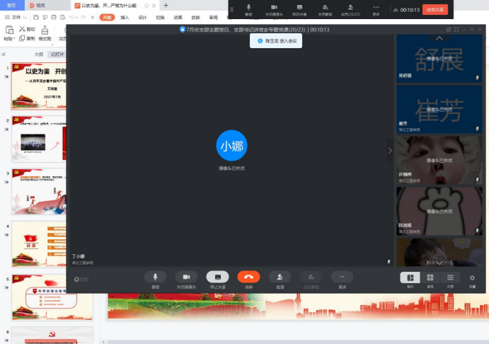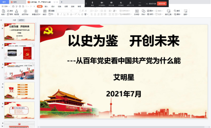 7月13日中午,KY开元集团官网入口学生党支部以钉钉会议的形式开展“支部书记讲党史专题党课”暨7月份支部主题党日活动,全体学生党员参加了会议,会议由吴舒展同志主持,党总支副书记艾明星为全体学生党员讲“以史为鉴 开创未来——从百年党史看中国共产党为什么能”专题党课。