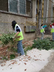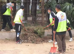为保证清洁活动的正常进行,数统学院阳光俱乐部与国教学院阳光俱乐部积极配合资委会进行工作安排,提前一天准备所需物资(如志愿服,扫把,锹等)、建立QQ群、合理分配工作并且确定集合时间。当天早上志愿者们热情高涨,陆续到达集合地点,根据个人分工领取了相对应的劳动工具后,志愿者们穿上荧光绿的志愿服来到东苑餐厅旁的网球场。