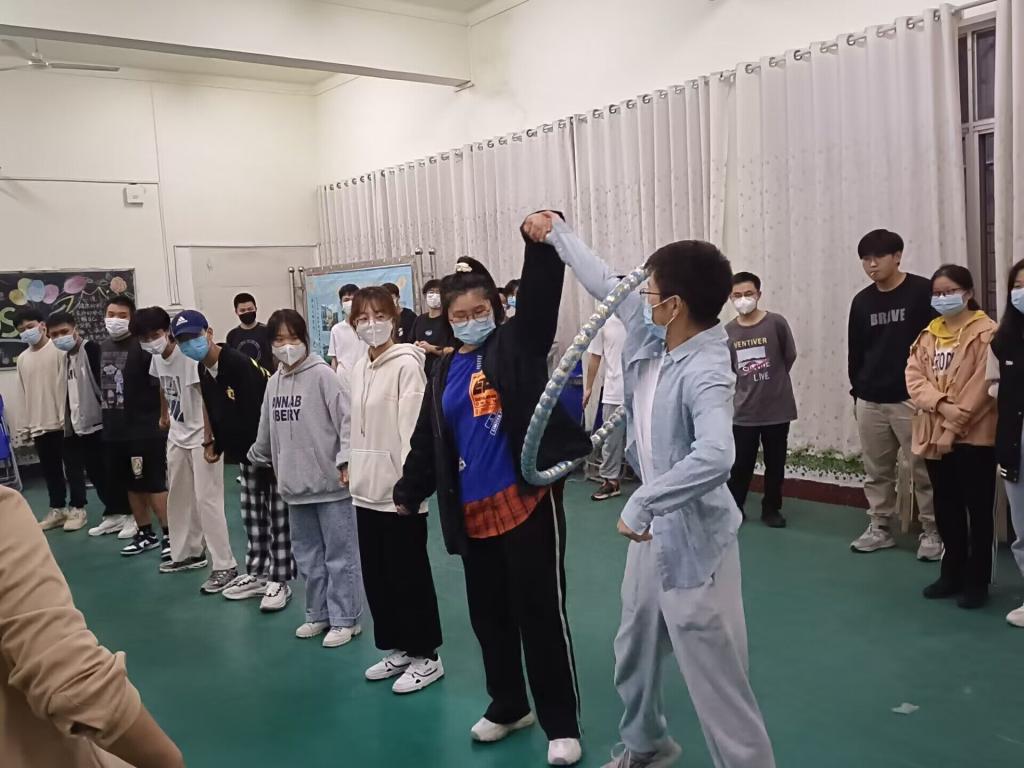 活动在充满欢乐的氛围中拉开序幕,王书记让大家围成一圈,闭上眼睛,在心里对父母、老师、同学、朋友说一声谢谢,希望大家常怀感恩之心。相互捶背、捏肩环节,打破了同学之间的拘谨。通过“大风吹”“优点轰炸”“团体传递呼啦圈”等游戏,使同学们感受到了团队协作的力量,促进了同学们之间的相互了解。活动过程中,每位同学都积极参与,全身心投入,现场时不时响起一阵阵欢快的笑声。每个环节,王书记都会请大家分享活动的感受与收获,引导同学们更加清楚的认识到团队的力量,领悟成长过程中的意义。