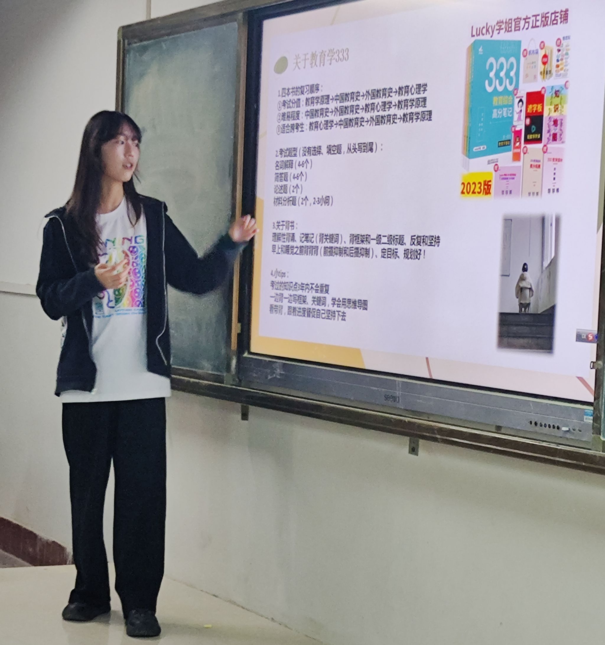 为帮助同学们在考研期间能够合理安排学习计划、找到更适合自己的学习方法、明确考研目标,5月7日晚上7点开元官网在教六202开展了考研经验分享交流会。本次会议由数统学院党委副书记尹洁主持,邀请了开元官网成功上岸的优秀大四学生来分享他们考研经验,并为即将考研的同学们提供一些建议。