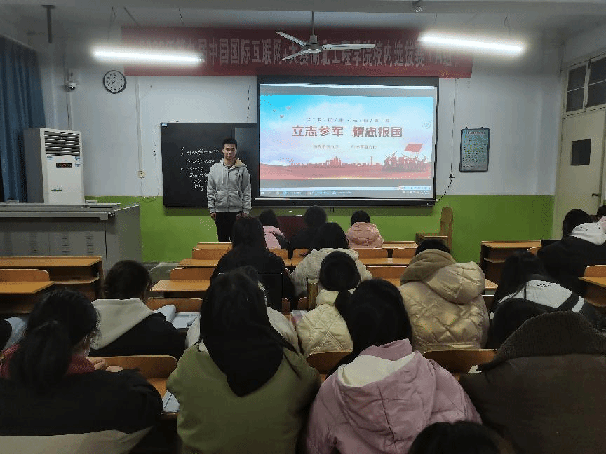 通过座谈会的形式,给学生介绍应征入伍的相关政策和待遇,引导学生树立正确的人生观和价值观,并以从大学走出的优秀退役军人事例,让同学们对我国的国防政策、军事战略以及军旅生活有了更深入的了解。随后2023级退役大学生张博洋分享了他如何从一名普通青年成长为一名优秀的军人,进一步激发了学生们的爱国情怀和报国之志。最后,马老师介绍了征兵流程、入伍体检等相关工作政策,并鼓励同学们积极响应国家的号召进入火热军营,践行青春使命,在实现中华民族伟大复兴的进程中贡献自己的青春力量。