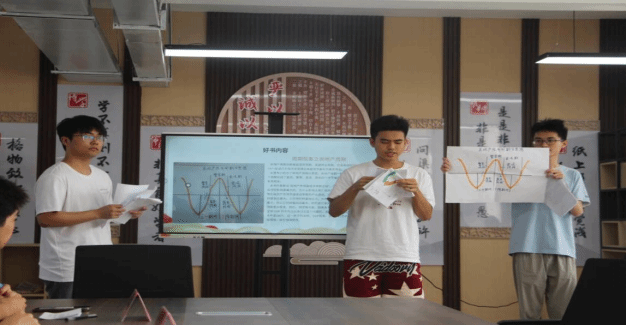 经济与管理学院寝室代表张志轩、周万成、陈子鹏三名同学讲述了《逃不开的经济周期》这本书,以生动新颖的方式向同学们讲述了经济周期的概念特征和主要周期现象,经济周期一般分为复苏、繁荣、衰退、萧条四个阶段,并指出要抓住事物的内在规律来研究和分析问题。同时,也与同学们分享了学习心得,一是理性看待经济波动,二是树立经济发展信心,三是养成良好消费习惯。