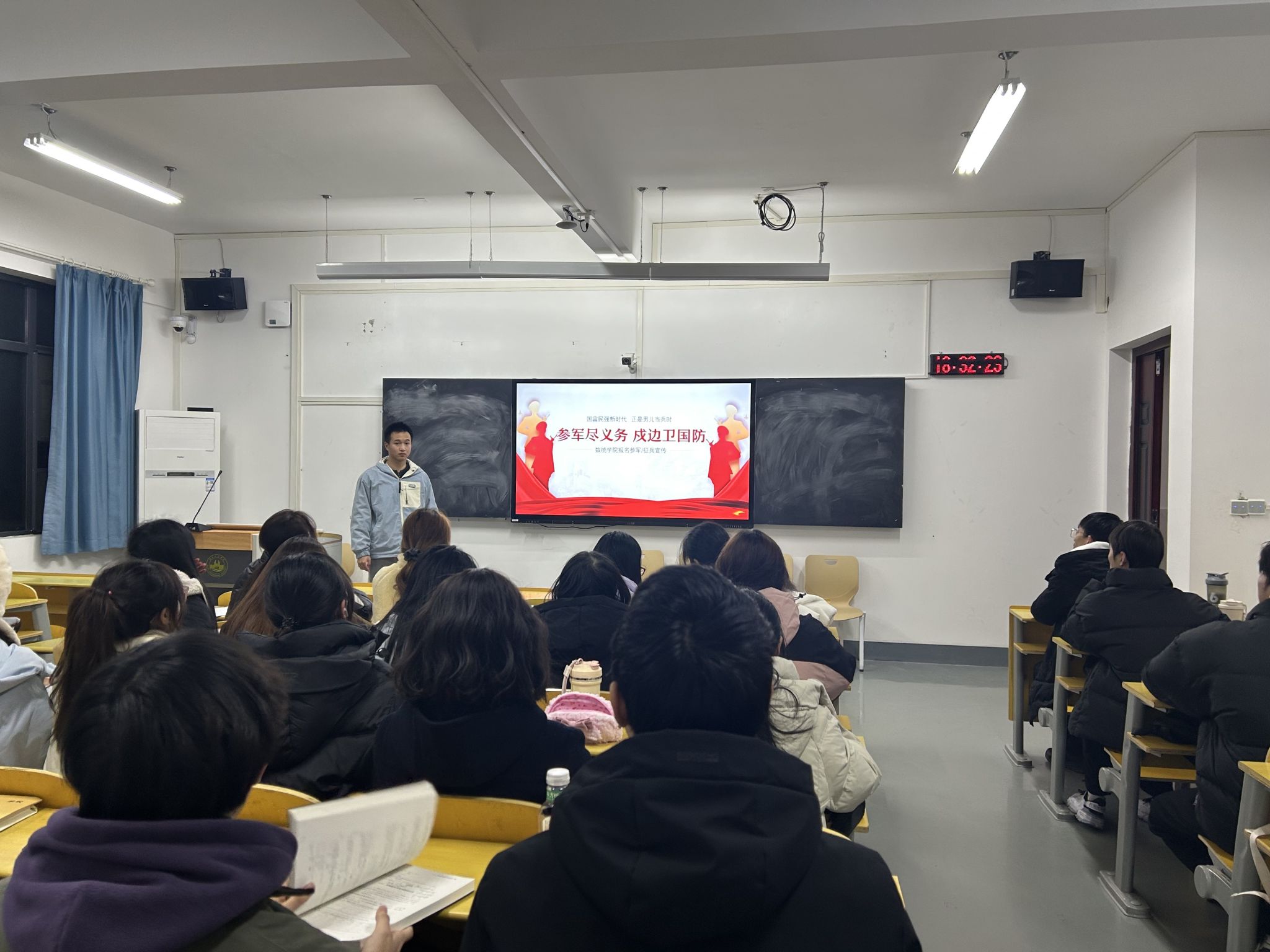 宣讲会上,辅导员马老师对当前国防建设的新形势、新特点,就大学生应征入伍的基本条件、报名流程、参军入伍的优势、优抚待遇、职业发展空间等相关问题进行了详细解读。开元官网学生2023级441班退役士兵张博洋同学用自己的亲身经历讲述军旅生活,并动员大家要积极响应国家号召,携笔从戎、参军报国,在军营建功立业,在军营中书写青春,为国防事业贡献力量。
