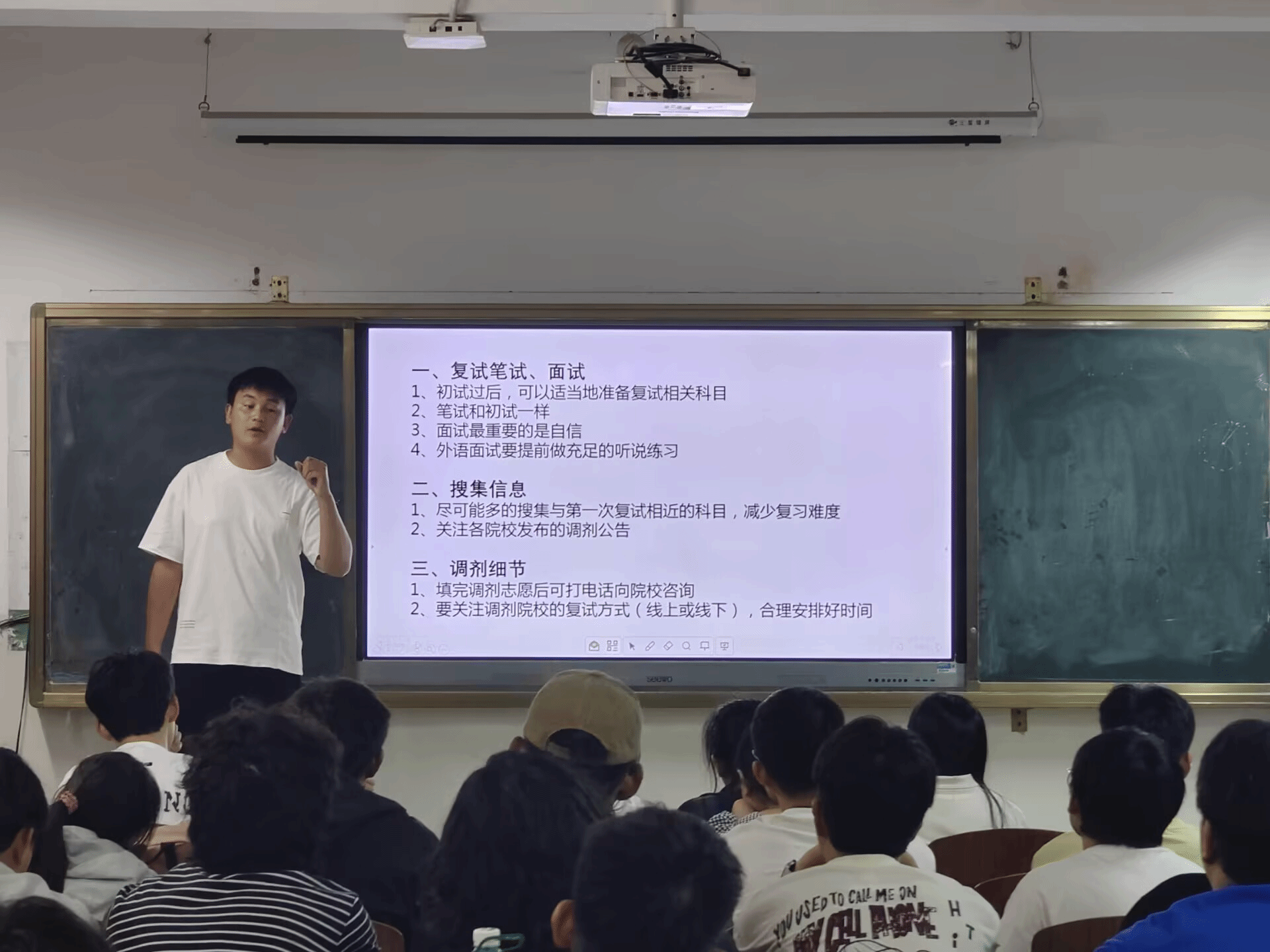 向梓榕同学从心态调节、复试调剂等角度进行讲解。他强调备考需保持独立节奏,避免盲目比较,尤其是在备考专业课期间,需要结合目标院校考试方向重点突破。根据个人调剂经验,他建议提前练习外语听说能力,关注调剂公告细节,灵活应对线上或线下考核形式。