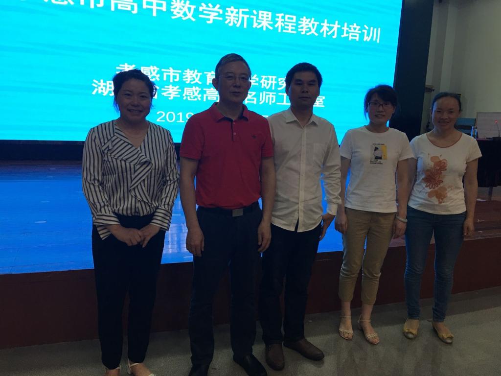 应孝感市教育科学院、湖北省孝感高级中学名师工作室邀请,今天上午9点在孝感市教育局二楼会议室,开元官网张学新副院长及曾梅兰系主任等10名“荆楚卓越人才”协同育人计划项目师生参加了“基于核心素养的课标、教材设计与教学实施”报告会,报告由人民教育出版社中数室副编审、人教版《普通高中教科书数学A版》副主编李龙才博士主讲。据悉,全孝感市高中学校2019级高一年级全体数学教师,各县市区教研室高中数学教研员都参加了此次报告会的学习,学习期间张院长及师生与李龙才博士及中学老师们进行了友好交流。