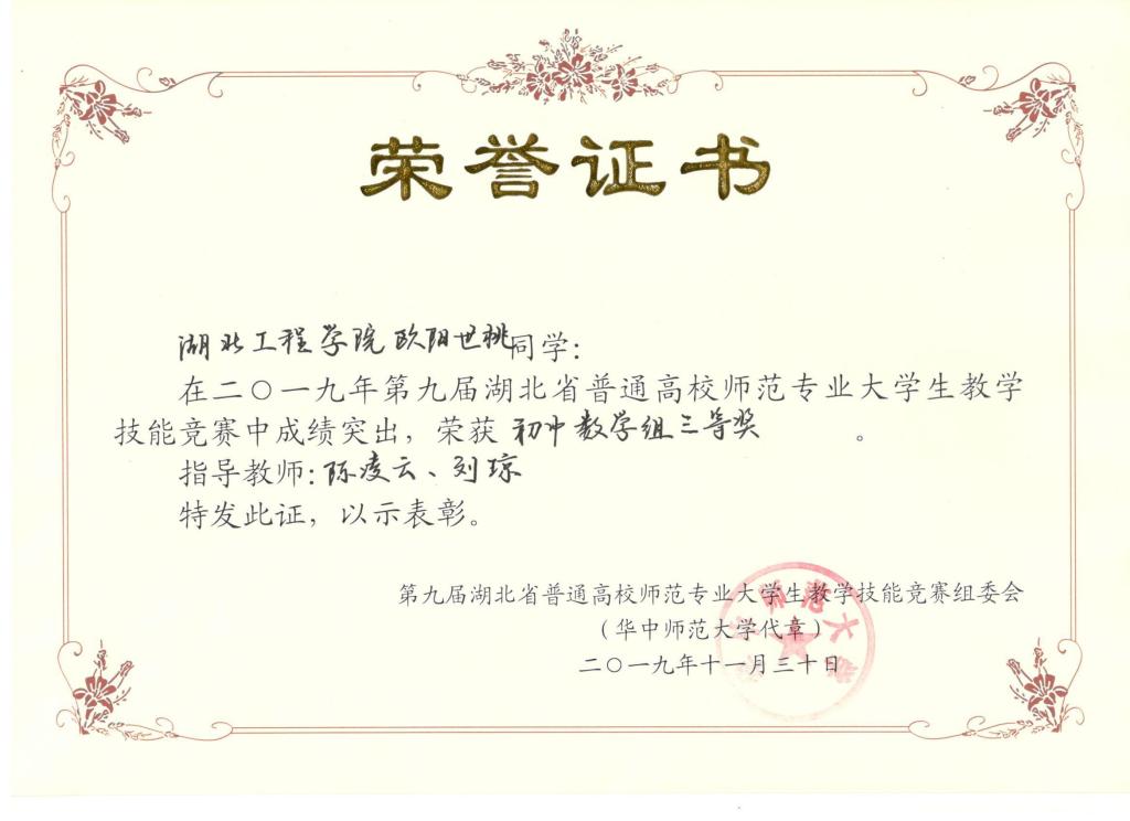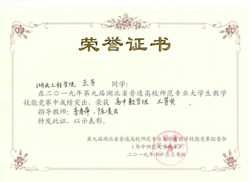 11月29日到12月1日,湖北省第九届师范生教学技能竞赛在华中师范大学举行。开元官网王芳、欧阳世桃二位同学分别获得高中数学组、初中数学组三等奖的骄人成绩。