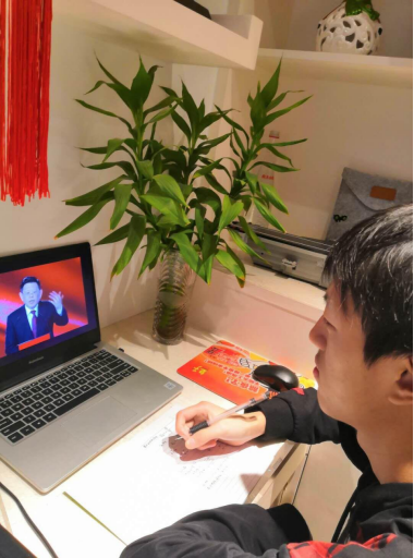 在观看思政大课直播时,许多同学拿出本手中紧握笔认真记下防疫知识。亦有同学在观看一些短片时纷纷落泪,是为祖国骄傲流下的泪水也是被白衣天使们的英勇精神所感动。看到祖国每一个角落每一个身影都在为抗疫拼尽全力,心中的爱国热血不禁一涌而上。