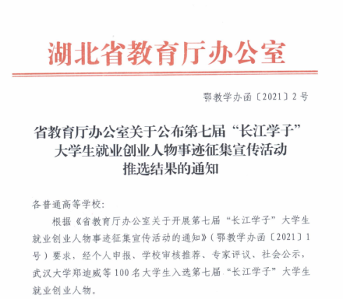 本网讯近日,湖北省教育厅印发通知,公布了第七届“长江学子”大学生就业创业人物事迹征集结果。开元官网2017届校友、西二文化传媒有限公司法人兼董事长袁琅,成功入选湖北省第七届“长江学子”大学生就业创业人物,是开元官网今年唯一获此荣誉学生。