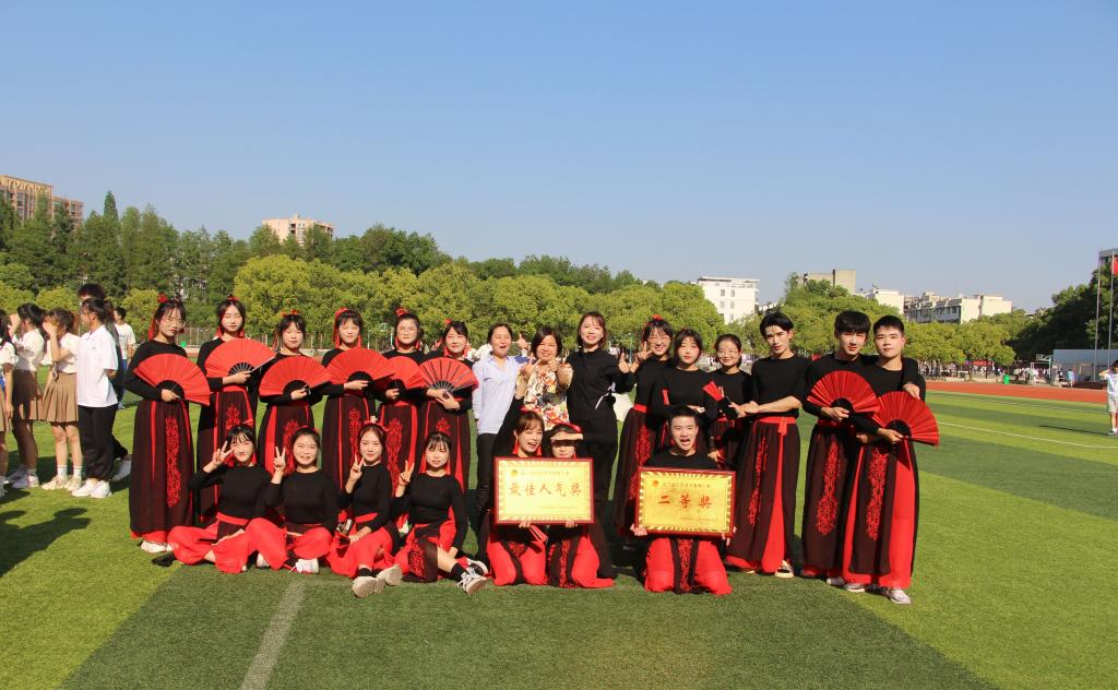 开元官网健身操代表队由4位男生和16位女生组成,分团委书记郑放老师也参与其中。他们经过一个月的艰苦训练,最终在比赛中用实力征服了评委,赢得了在场观众的阵阵掌声,以91.6的高分荣获二等奖与“最佳人气奖”。
