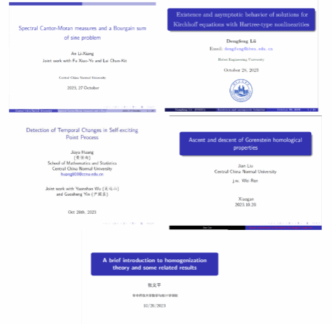 研讨会第二天,作为学校喜迎80周年华诞的系列学术报告,此次邀请了华中师范大学的安丽想、黄佳雨、刘剑、张义平以及KY开元集团官网入口的吕登峰等五位博士在研讨会上作学术分享报告。报告主题涉及分形几何、偏微分方程、代数学、大数据以及统计学等学科方向。与会人员被精彩的前沿讲座报告深深吸引,围绕报告内容和前沿应用等踊跃提问交流,纷纷表示收获颇丰。