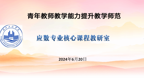 为落实立德树人根本任务,加快推进学院内涵建设和高质量发展,帮助青年教师提升教育教学能力,提高青年教师课堂教学效果,建设一支师德高尚、素质优良的青年教师队伍。2024年6月20日(周四)下午,数学与应用数学专业核心课程教研室在数统学院三楼会议室进行了青年教师教学能力提升教学师范交流会。数学与应用数字专业全体专任教师参加交流活动,同时邀请学校和学院相关督导参加。