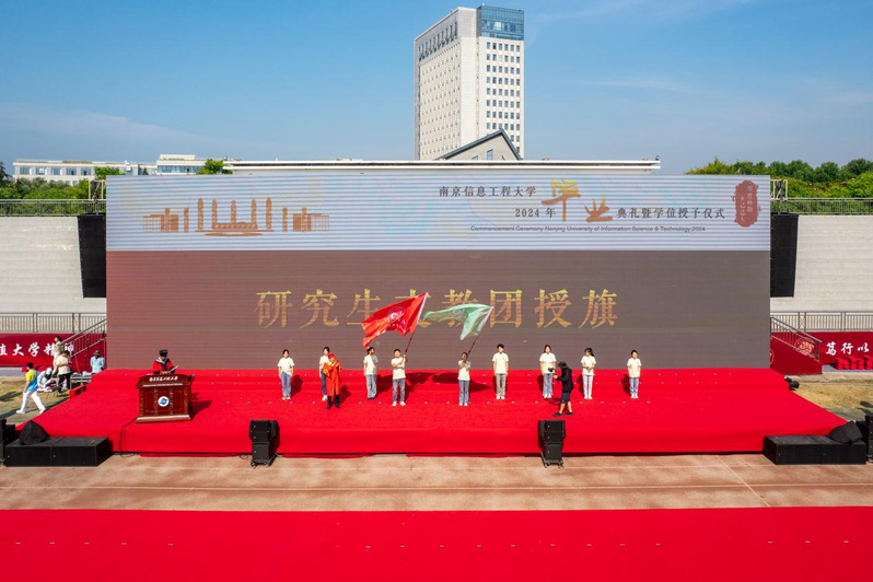 今年是南信大研究生支教团成立十周年,也是学校深化与世界气象组织合作的开拓之年。李北群为2024年江苏省优秀毕业生颁奖,并为即将出征的研究生支教团、国际组织实习团授旗。
