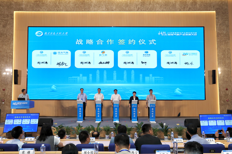 8月29日,江苏教育界与产业界对话对接系列活动——科技创新赋能气象产业发展大会在伟德官网举办。江苏省教育厅二级巡视员周玖华,江苏省气象局党组成员、副局长解令运,南京江北新区党工委委员、管委会副主任陈文斌,国睿科技股份有限公司总经理黄强,华为江苏城市云总经理赵攀,中国科学院院士、伟德官网气象灾害预报预警与评估协同创新中心主任王会军,校党委副书记、副校长陈海山,副校长金自康出席开幕式。开幕式由金自康主持。