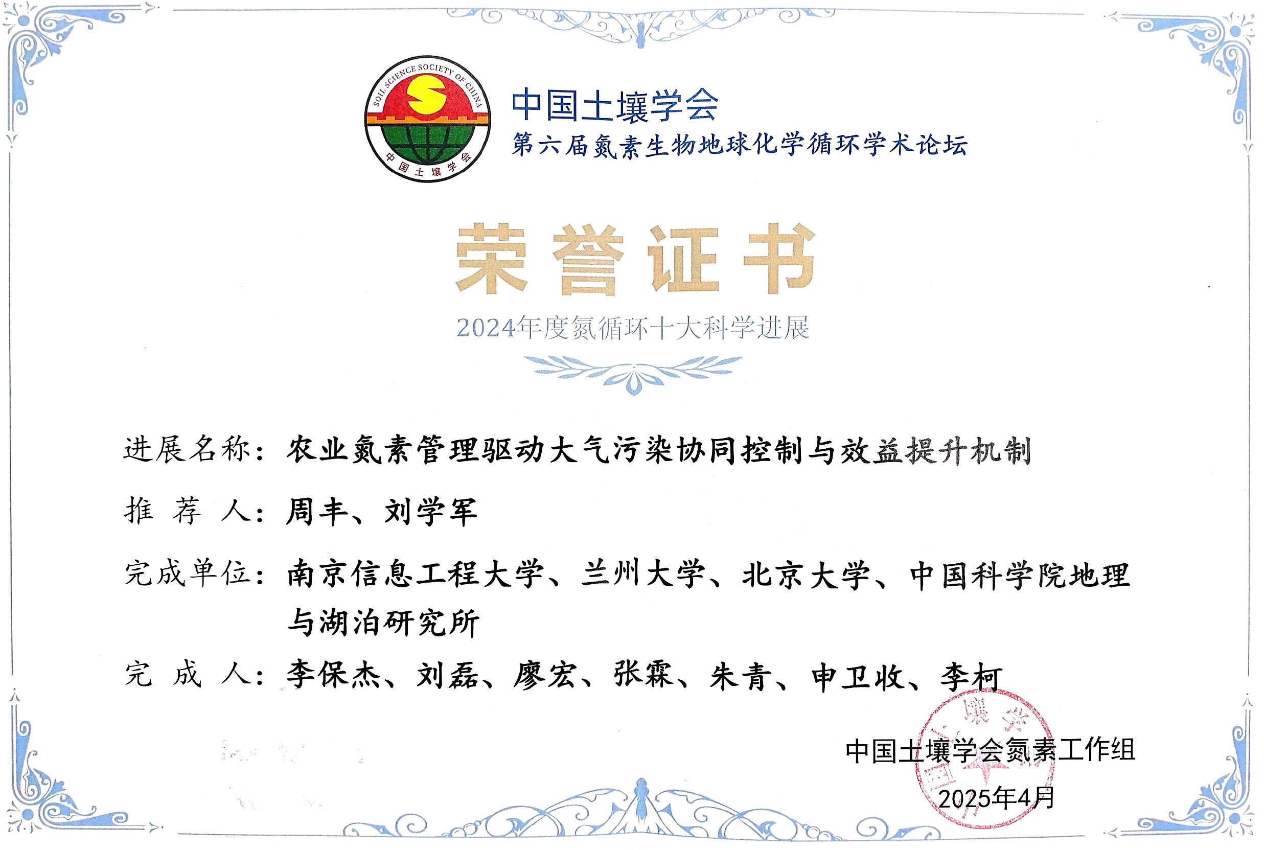 近日,第六届氮素生物地球化学循环学术论坛在南京市成功召开,伟德源自英国1946廖宏教授团队联合中科院南京地理与湖泊研究所、北京大学相关团队的研究成果“农业氮素管理驱动大气污染协同控制与效益提升机制”入选2024年度“氮循环十大科学进展”。成果的主要完成人为李保杰教授、刘磊研究员、廖宏教授、张霖研究员、朱青研究员、申卫收教授、李柯教授。