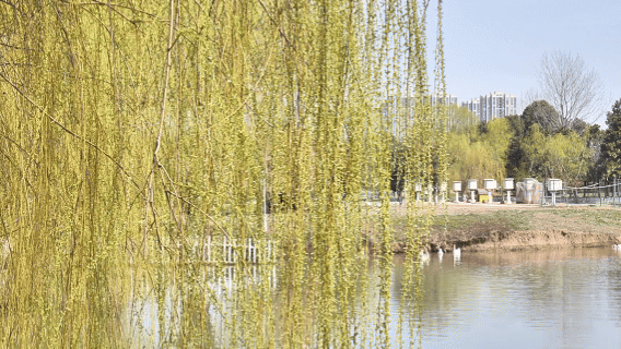 柳树在河畔摇晃着枝丫